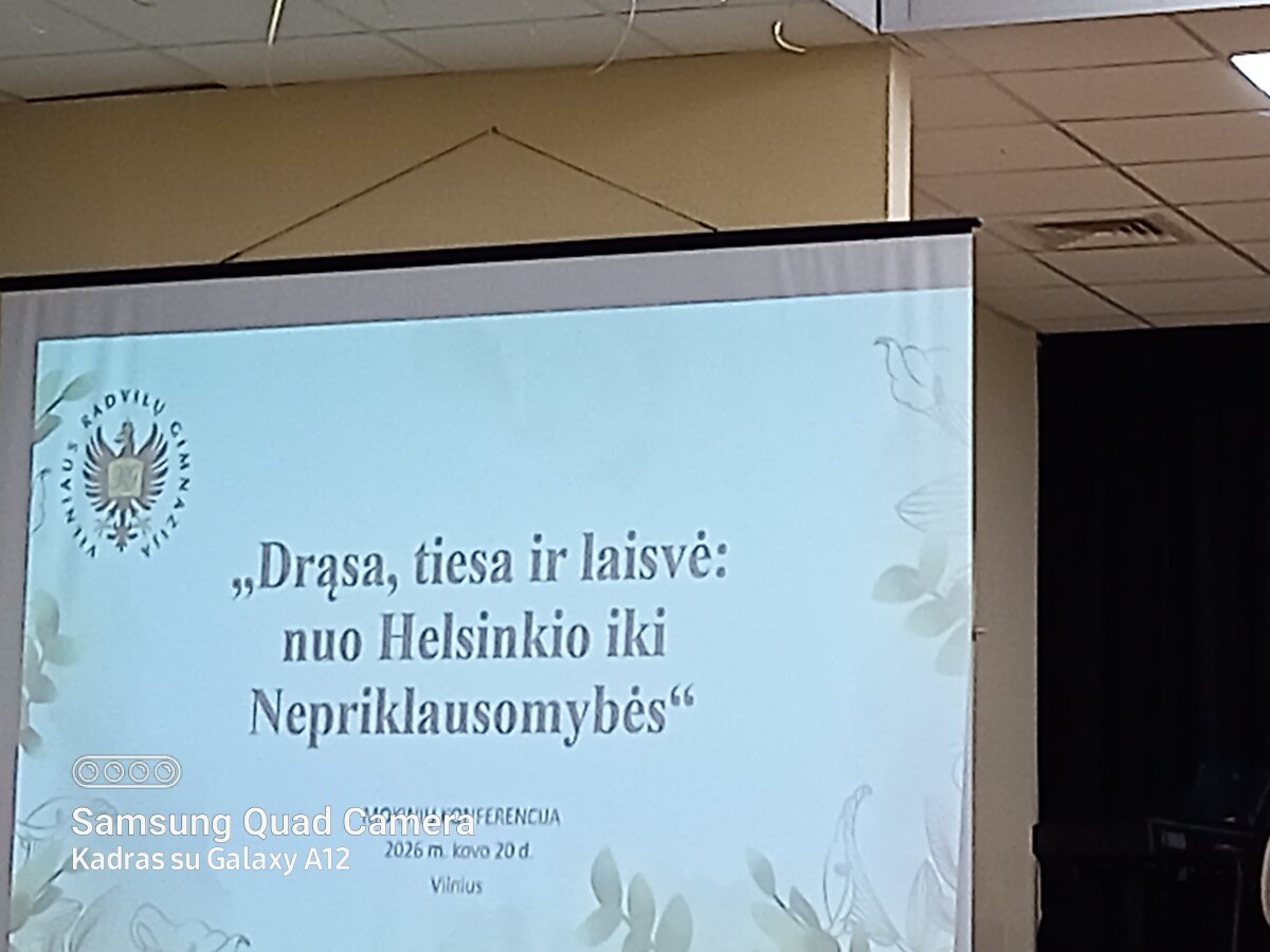 2026 m. kovo 20 d. 12 val. Vilniaus Radvilų gimnazijoje vyko Nacionalinė bendrojo ugdymo mokyklų 7 - 12 (gimnazijų I - IV) klasių mokinių integruota tikybos - geografijos - istorijos konferencija tema „Drąsa, tiesa ir laisvė: nuo Helsinkio iki Nepriklausomybės“, skirta paminėti 2026-uosius – Lietuvos Helsinkio grupės ir Balio Gajausko metus.