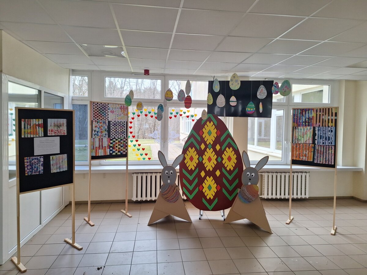 Mokykloje jau tvyro švenčių laukimo nuotaika – koridorius puošia velykiniai akcentai, o šalia jų – nauja 8 klasių mokinių optinio meno darbų paroda!