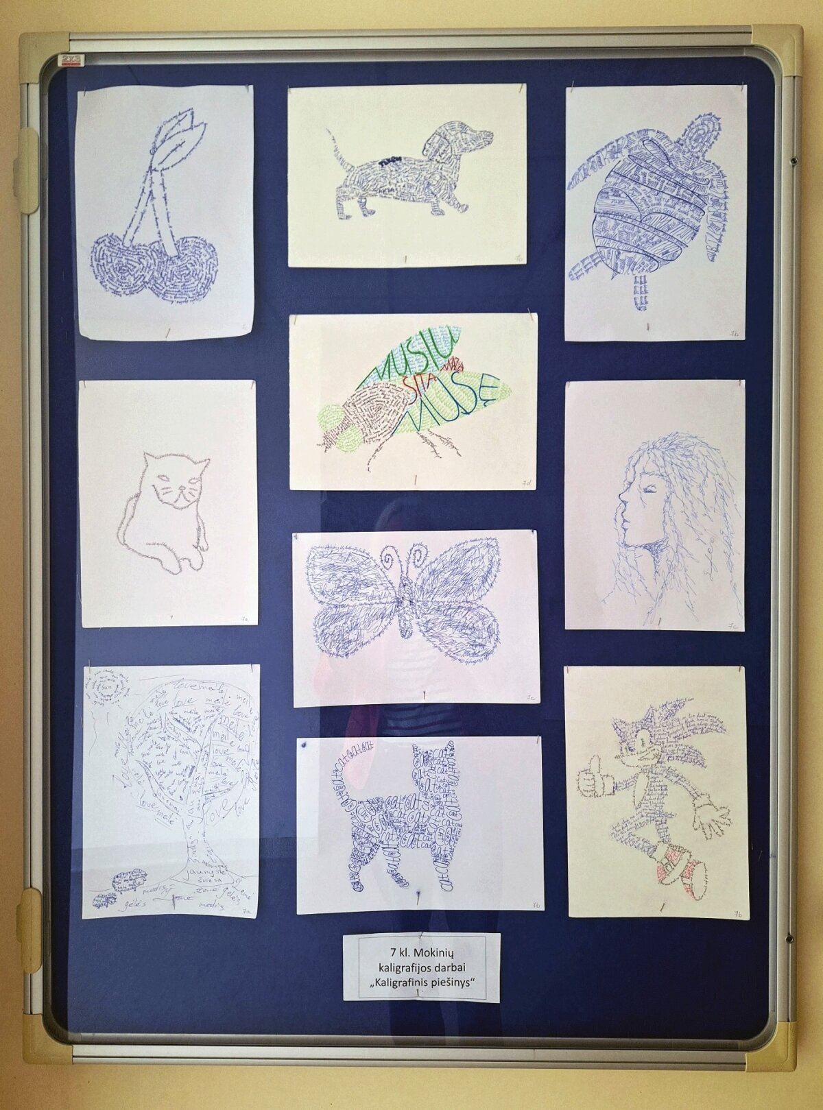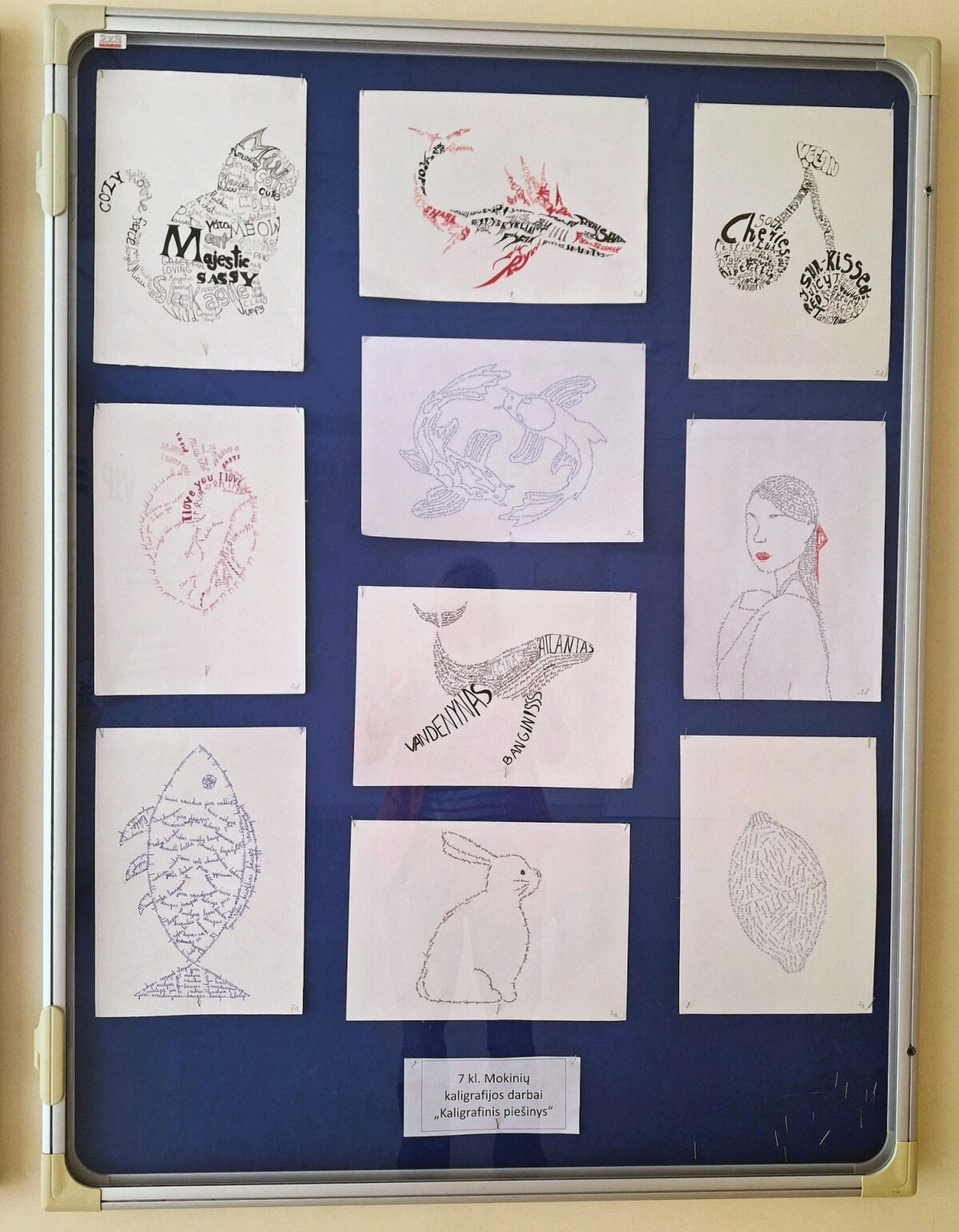 II-ajame mokyklos aukšte eksponuojami 6 klasių mokinių kurti ekslibriai – unikalūs asmeniniai knygos ženklai, sukurti dailės pamokų metu. Taip pat čia išvysite 7 klasių moksleivių kaligrafinius piešinius, kuriuose menas ir tekstas susilieja į vieną, perteikdami vaizdą per raidžių grožį.