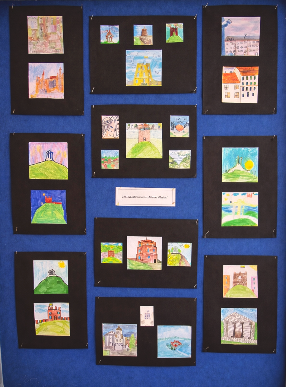Sausio 25 d. Vilnius mini savo gimtadienį. Šiai progai paminėti mūsų mokyklos II aukšto koridoriaus stenduose eksponuojami 7-tų klasių mokinių dailės darbai – miniatiūros tema „Mano Vilnius“.