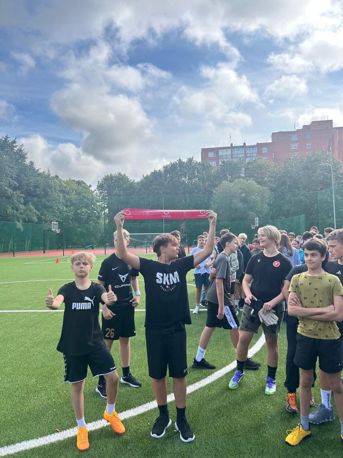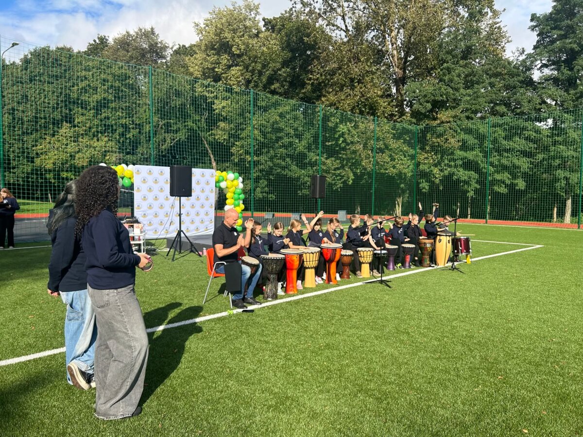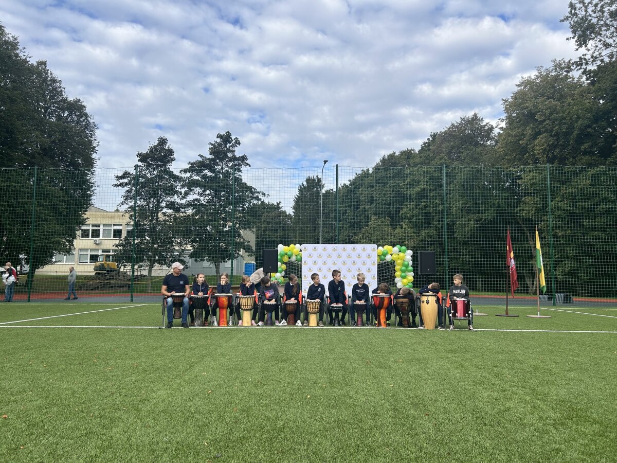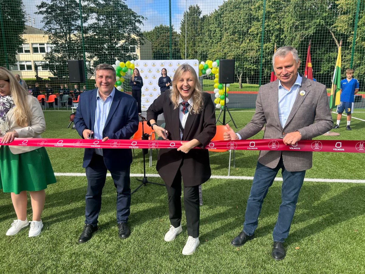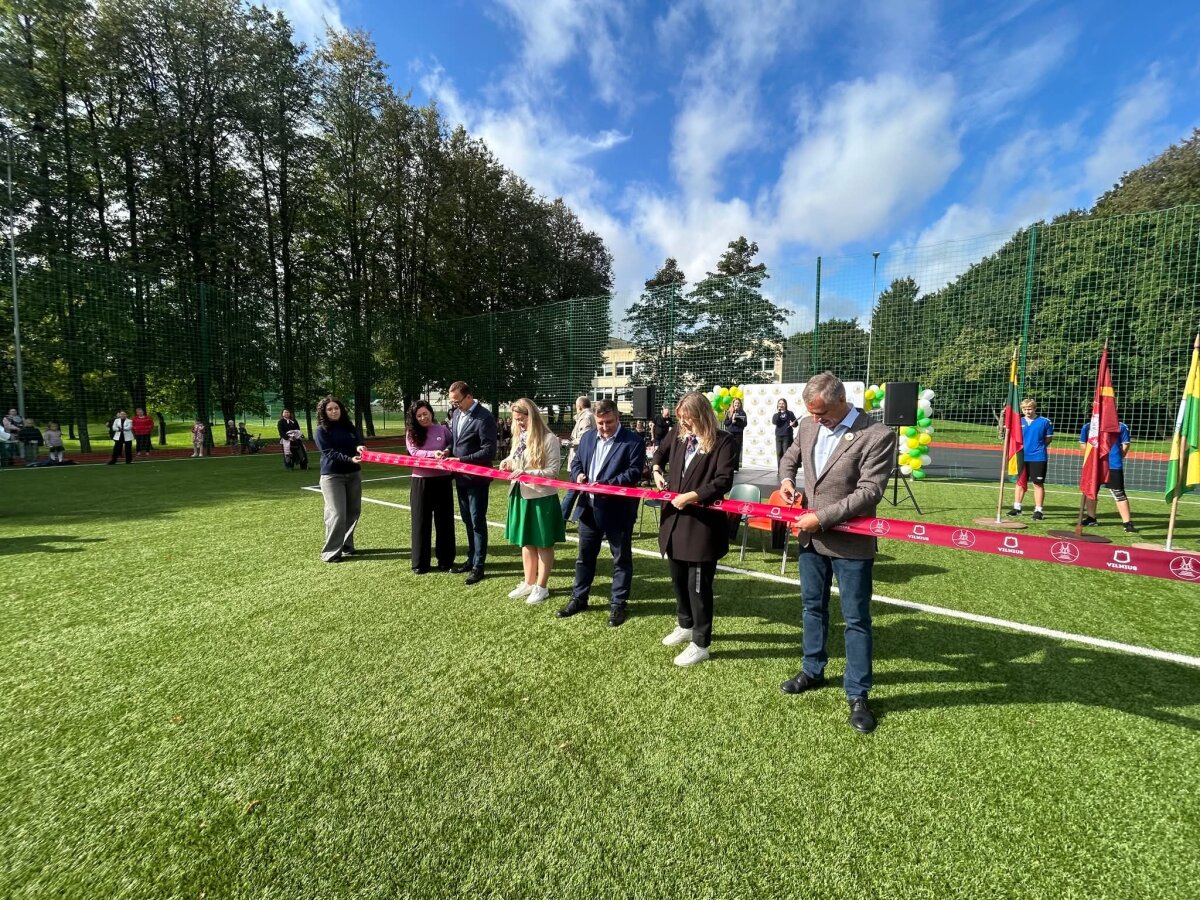 Mokyklos stadione vyko iškilminga atidarymo šventė. Juostelę perkirpo garbingi svečiai iš Vilniaus miesto savivaldybės – vicemerė Donalda Meiželytė, Viktorija Vilimavičienė, Marius Labanauskas, Rasa Rumšienė – kartu su mūsų mokyklos direktoriumi Linu Vasarevičiumi ir mokyklos tarybos pirmininku Adomu Ūseliu.