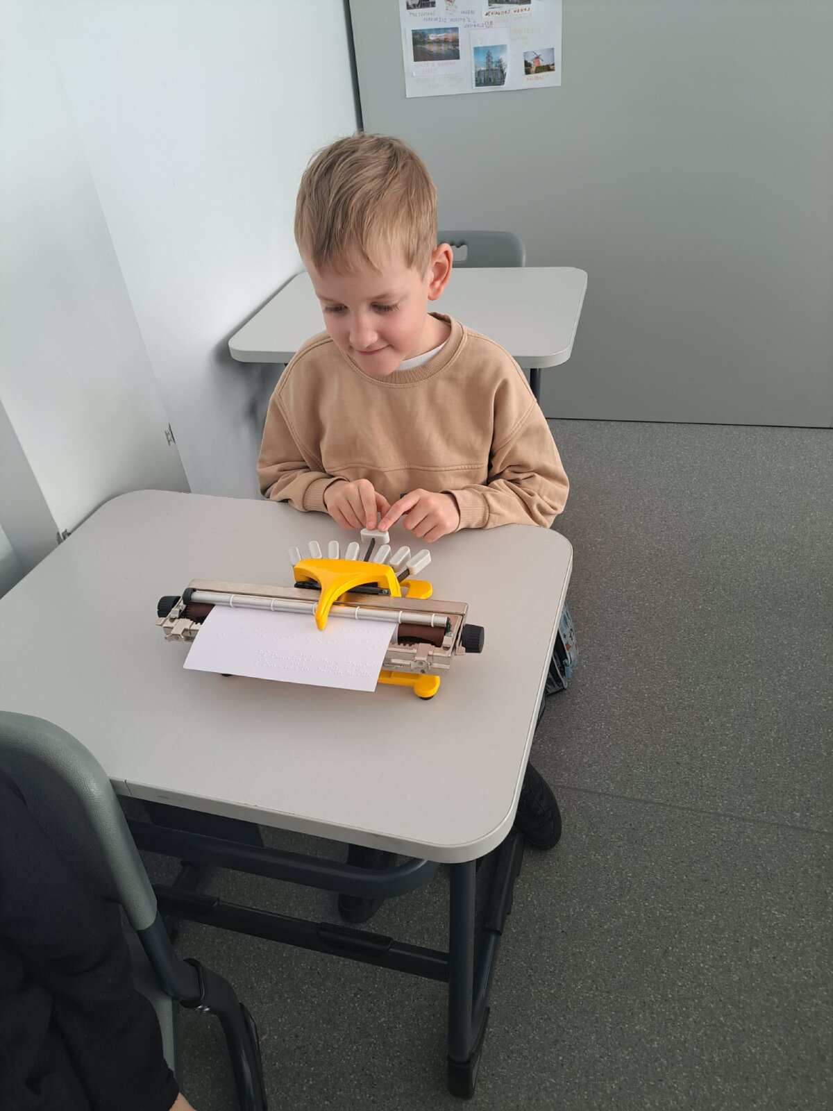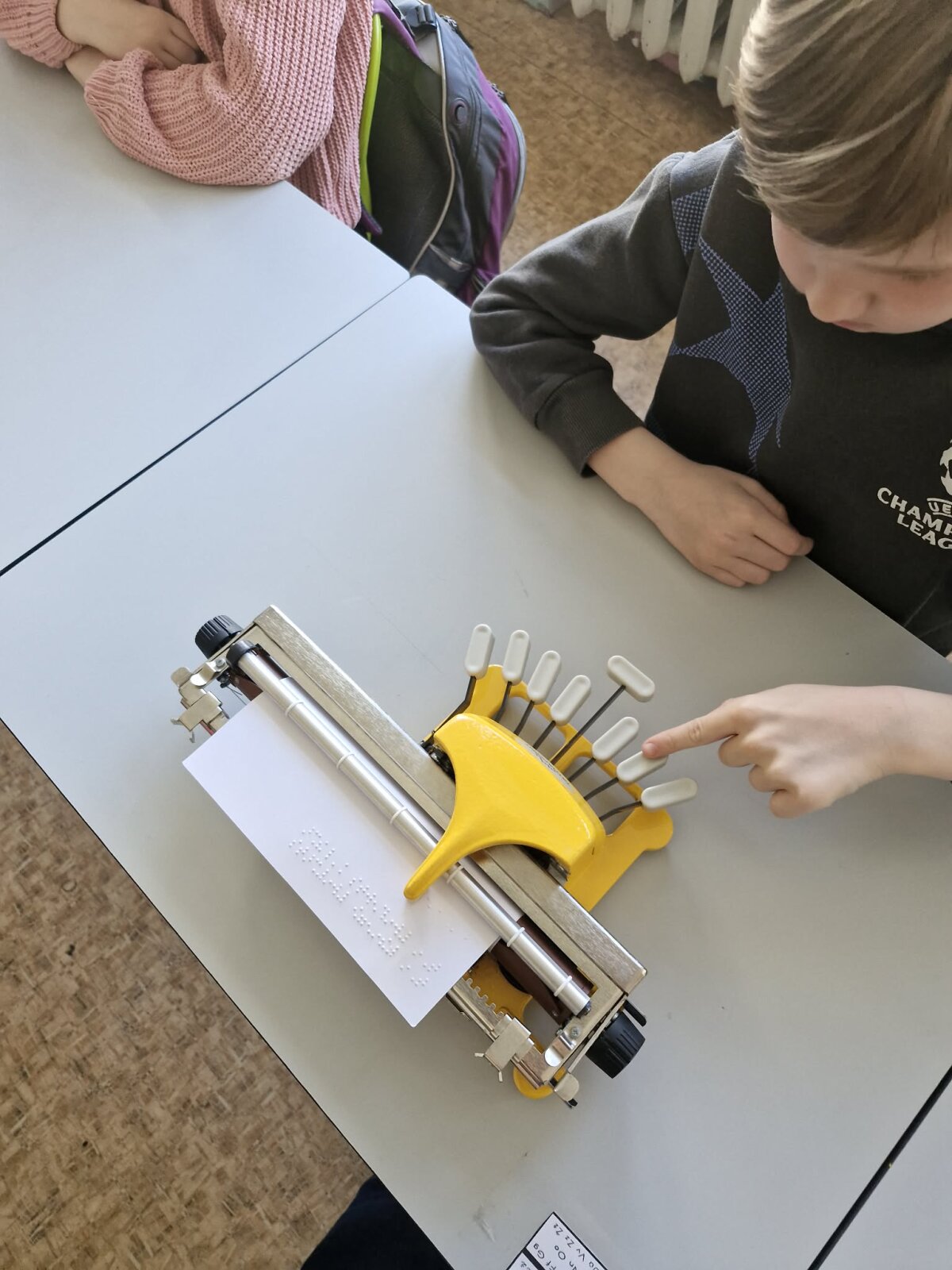 Vaikai klausėsi pasakos iš Brailio rašto knygos, patys išbandė specialias priemones – Brailio mašinėlę bei kalbančius įrenginius ????. Edukacijos metu ne tik sužinojo, kaip gyvena regos negalią turintys žmonės, bet ir mokėsi, kaip jiems padėti kasdienėse situacijose.