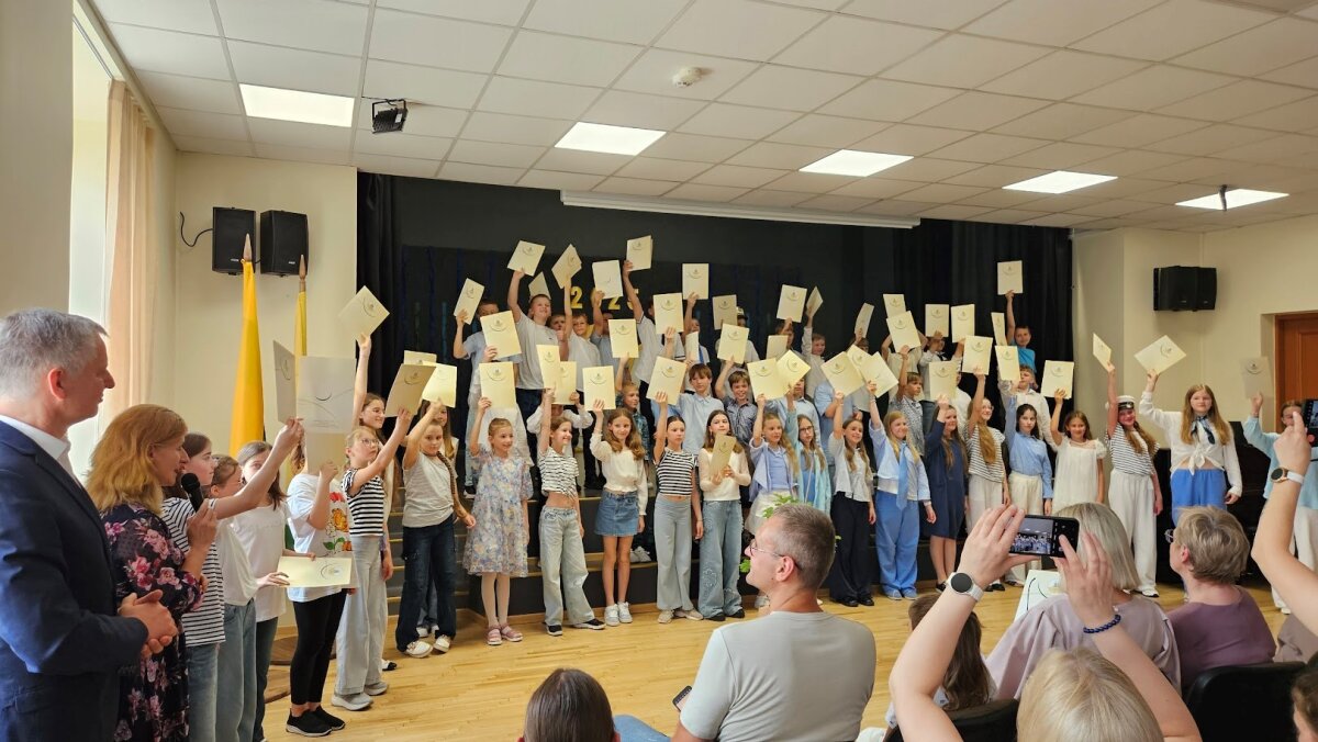 Birželio 6 d. vyko ketvirtokų pradinio ugdymo baigimo pažymėjimų įteikimo šventė. Ketvirtokai šokiais ir dainomis pasitiko vasarą, nuotaikingai atsisveikino su pradinėse klasėse prabėgusiu laiku. Rankose išdidžiai spaudė svarbų dokumentą. Linkime, kad išmoktos pamokos vestų pirmyn, skatintų kurti, atrasti ir tobulėti.